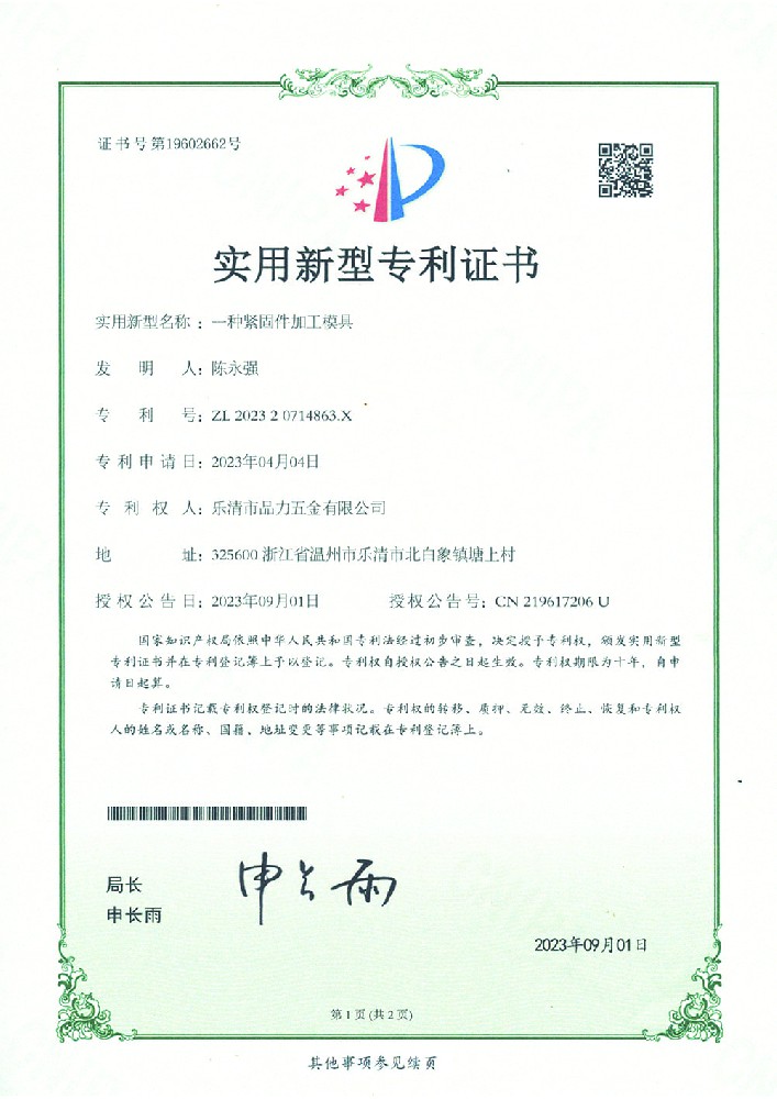 实用新型专利证书